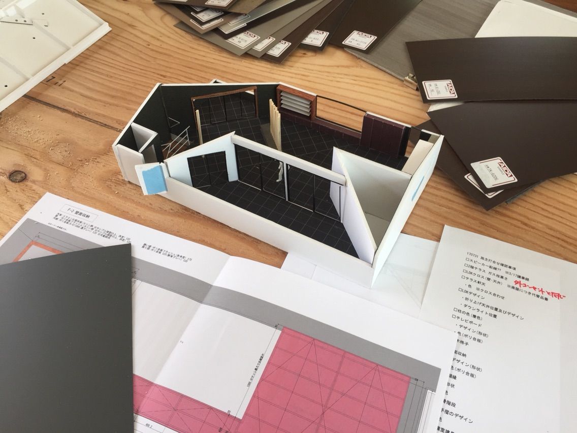 なんと設計の先生が😳カラーサンプル模型を作成くださいました。イメージがしやすい😄さすがです👍