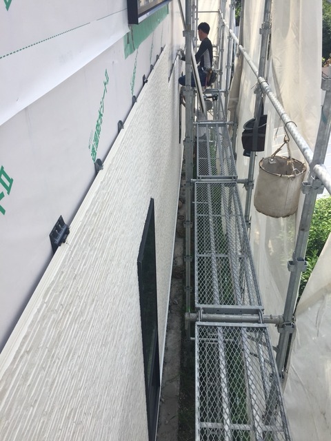 外壁材の施工が始まりました…シールレスの外壁材…非常に綺麗で高級感があります😄